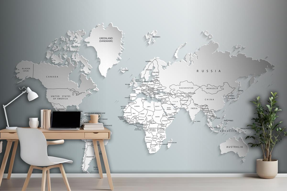 Gri Dünya Haritası Ülkeler Duvar Kağıdı