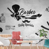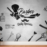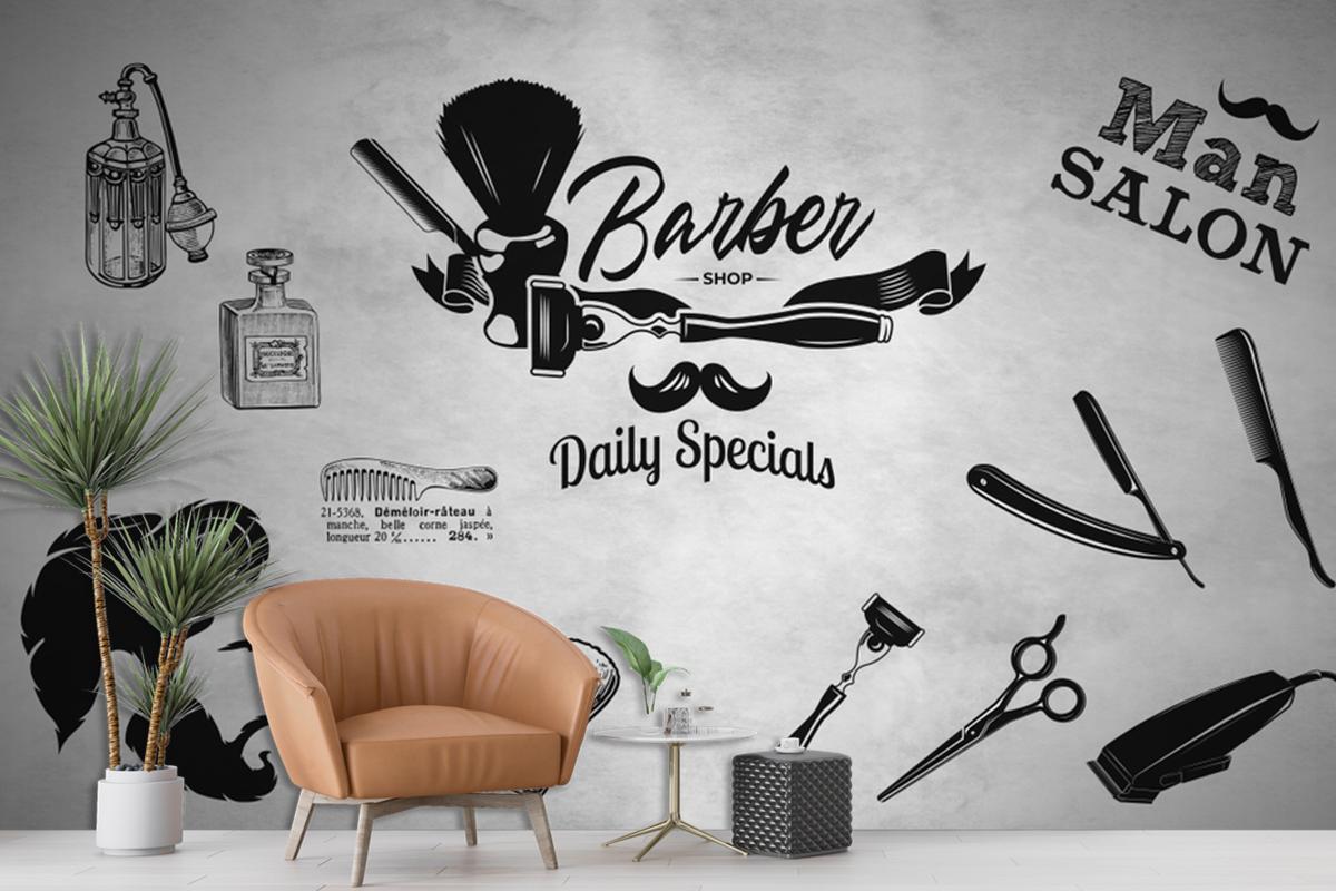Gri Eskitme Zemin Silüet Tarzı Kuaför Duvar Kağıdı