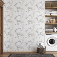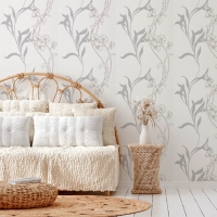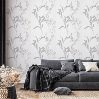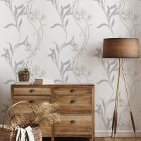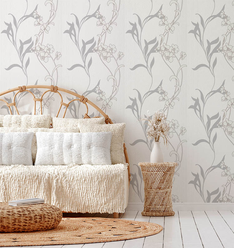 Gri Krem Çiçekler Ucuz Duvar Kağıdı 53721