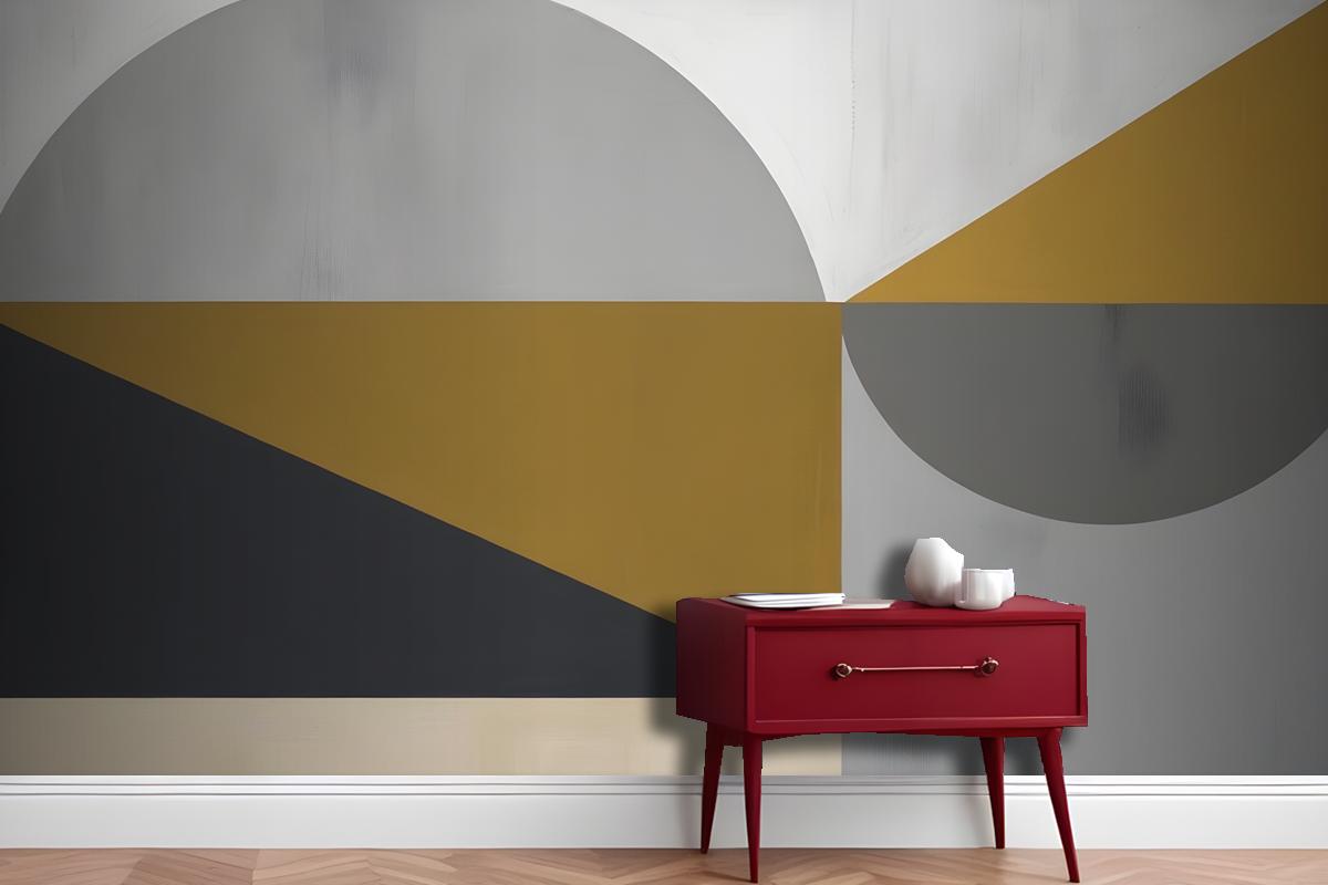 Gri, Sarı Ve Siyah Tonlarında Soyut Geometrik Şekiller Antre Hol Koridor Duvar Kağıdı