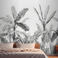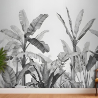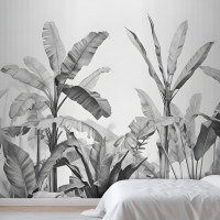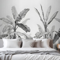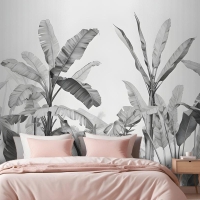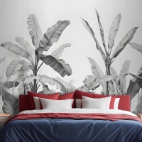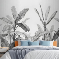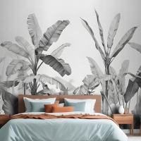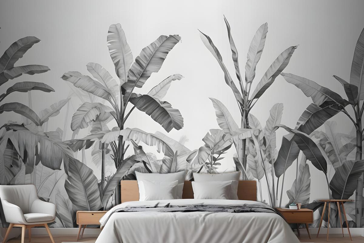 Gri Tonlamalı Vintage Tropikal Bitkiler Yatak Odası Duvar Kağıdı