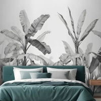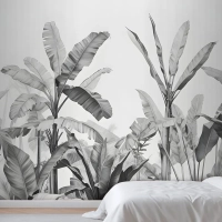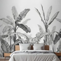 Gri Tonlamalı Vintage Tropikal Bitkiler Yatak Odası Duvar Kağıdı