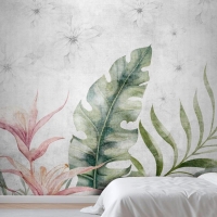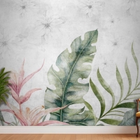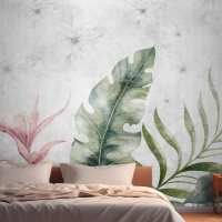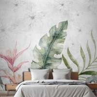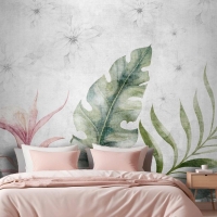Gri Yatak Odası Duvar Kağıdı Duvar Çiziminde Yeşil Dallar Ağaç Yaprakları