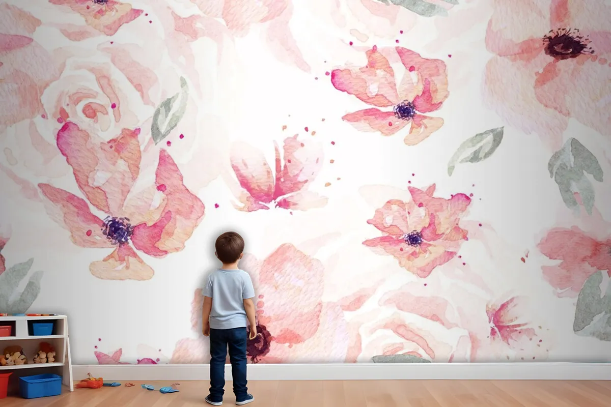 Gül Ve Portakal Çiçeklerinin Kusursuz Deseni Çocuk Odası Duvar Kağıdı Çizilmiş