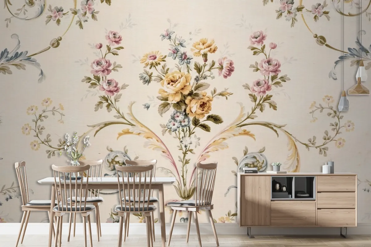 Gül Yatağı Çiçek Antika Duvar Kağıdı