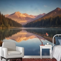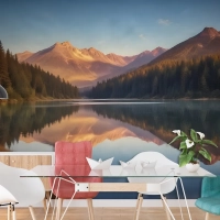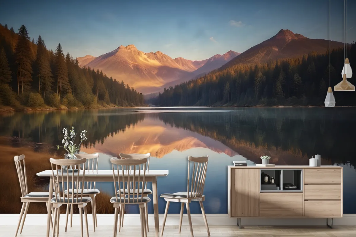 Gündoğumunda Dağ Ve Göl Manzarası Duvar Kağıdı