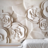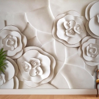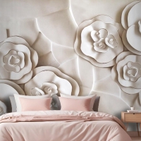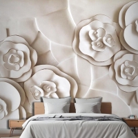 Güzel Beyaz Mermer Çiçek Yatak Odası Duvar Kağıdı