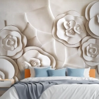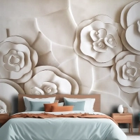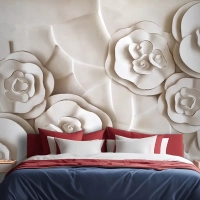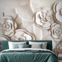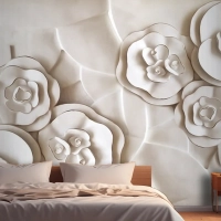 Güzel Beyaz Mermer Çiçek Yatak Odası Duvar Kağıdı