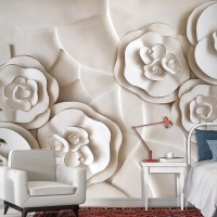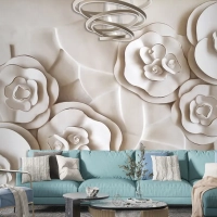Güzel Beyaz Mermer Çiçekli 3D Duvar Kağıdı