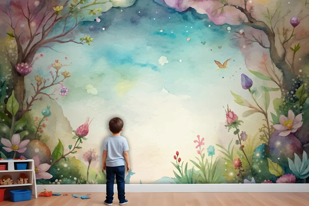 Güzel Bir Kır Çiçeği Suluboya Arka Plan Çocuk Odası Duvar Kağıdı