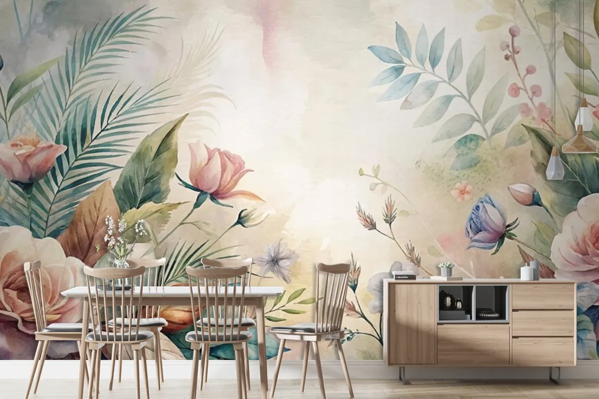 Güzel Çiçekler Duvar Kağıdı İçeren Suluboya Arka Plan