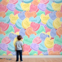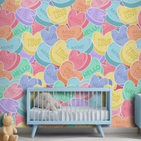Güzel Konuşma Kalpler Desen Çocuk Odası Duvar Kağıdı