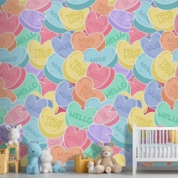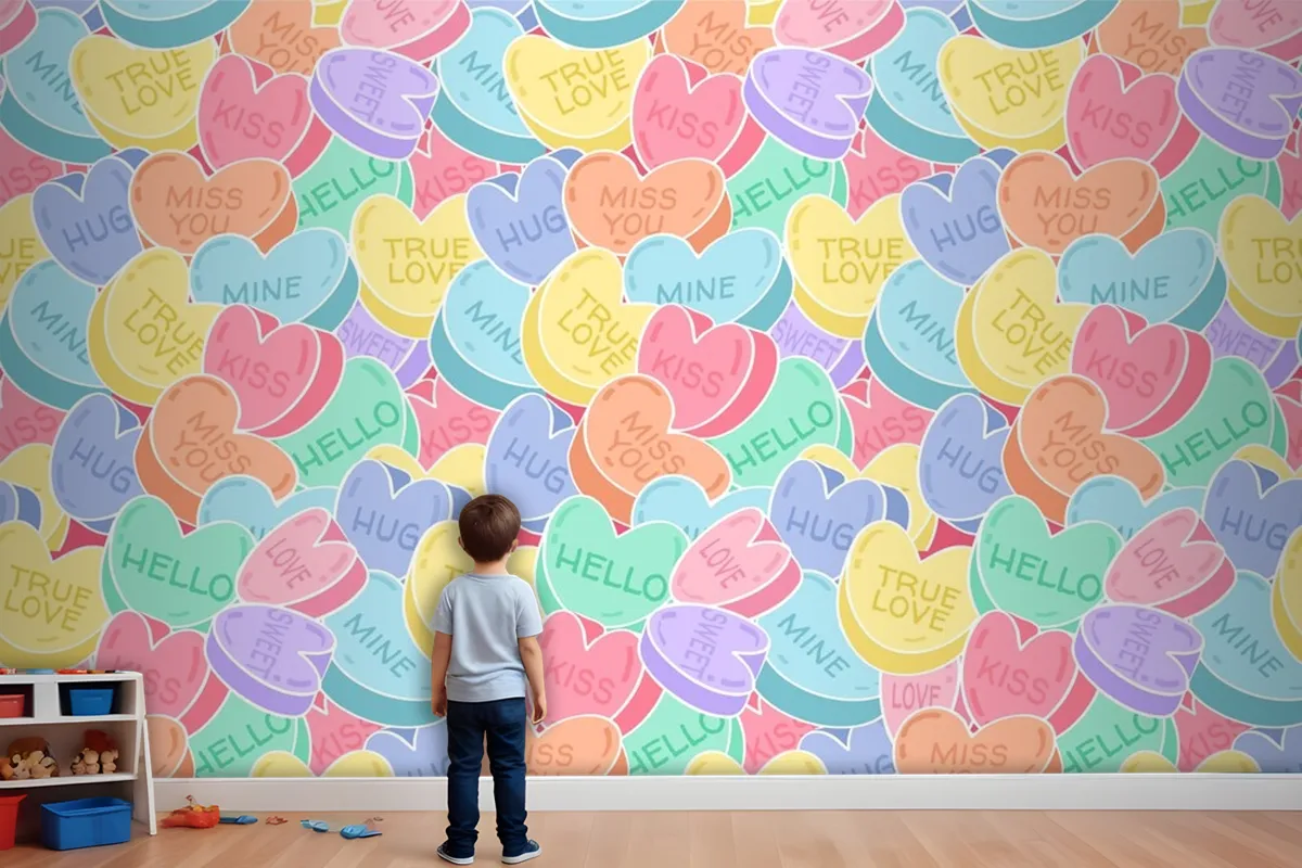 Güzel Konuşma Kalpler Desen Çocuk Odası Duvar Kağıdı