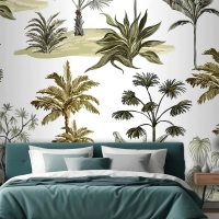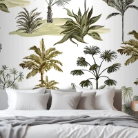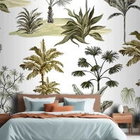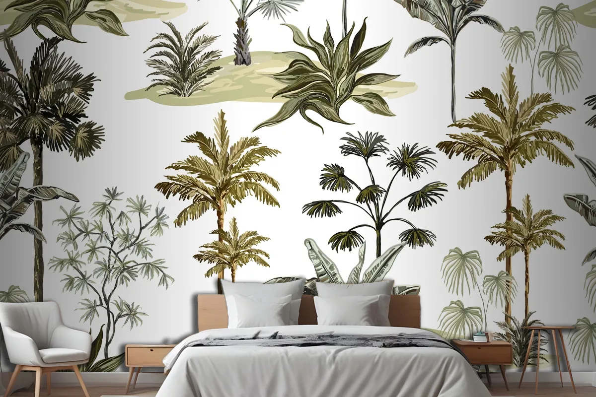 Güzel Tropikal Vintage Hawaii Palmiye Ağaçları Yatak Odası Duvar Kağıdı