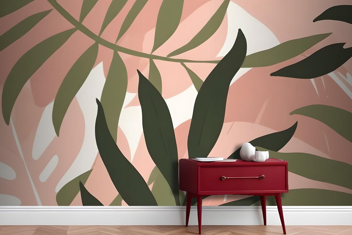 Hafif Antre Hol Koridor Duvar Kağıdı Duvarında Yeşil Ve Pembe Tonlarında Soyut Tropikal Yapraklar