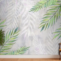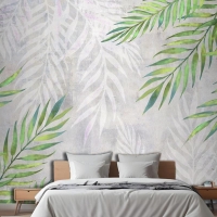 Hafif Dokulu Yatak Odası Duvar Kağıdı Duvarında Köşelerde Yapraklar