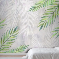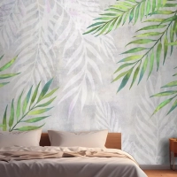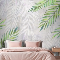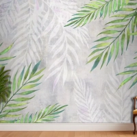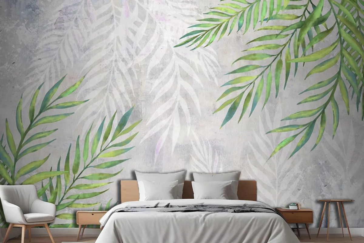 Hafif Dokulu Yatak Odası Duvar Kağıdı Duvarında Köşelerde Yapraklar