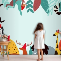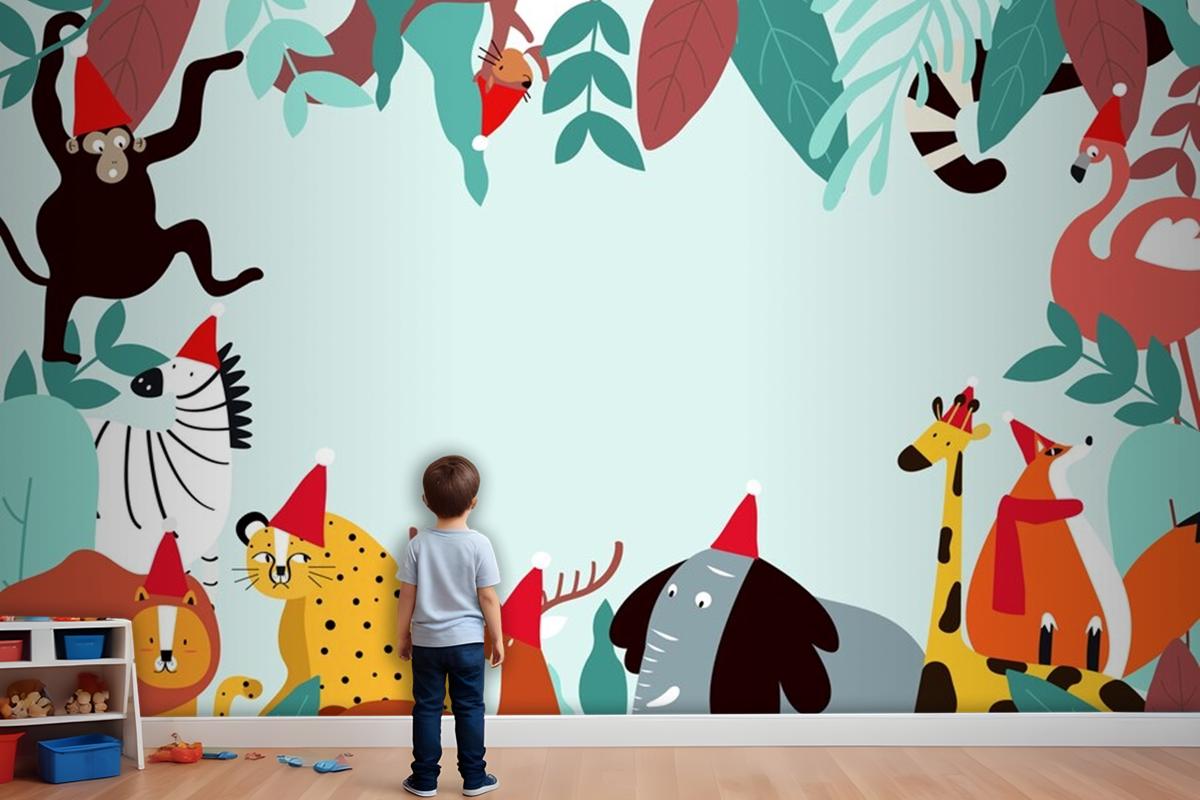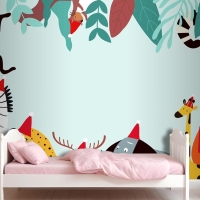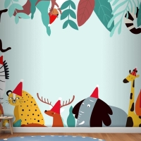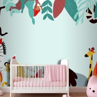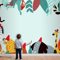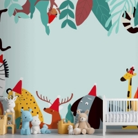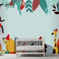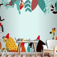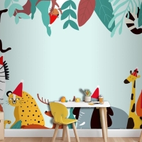 Hayvanlar Tema Şablonu Çocuk Odası Duvar Kağıdı