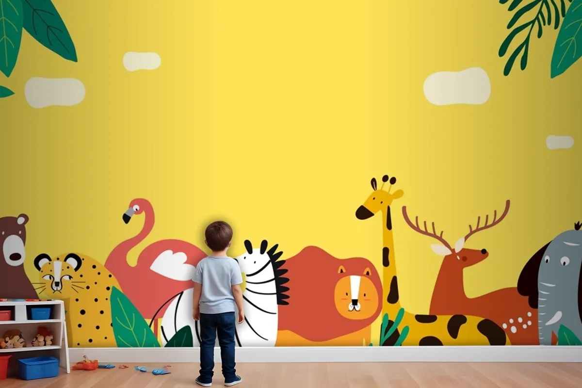 Hayvanlar Tema Şablonu Vektör Çocuk Odası Duvar Kağıdı