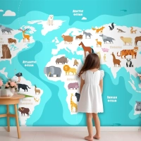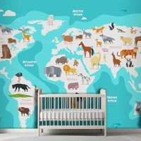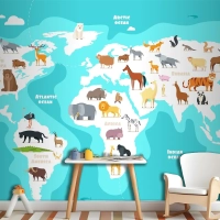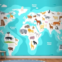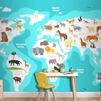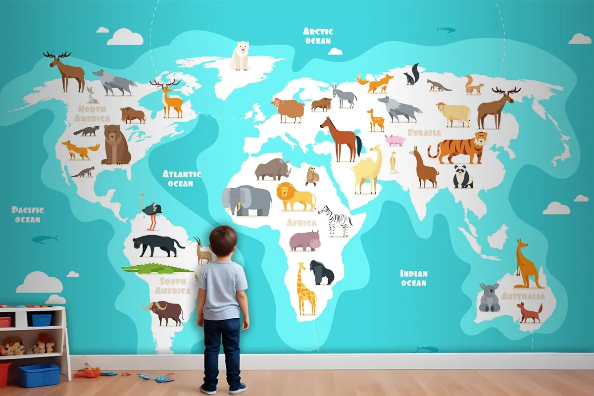 Hayvanlarla Dünya Haritası Dünya Keşfi Komik Çocuklar Coğrafya Çocuk Odası Duvar Kağıdı