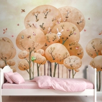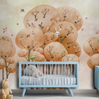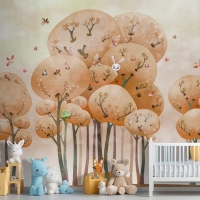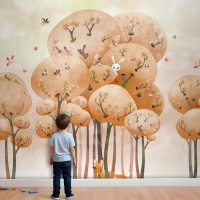 Hayvanlı Suluboya Orman Sonbahar Tilki Çocuk Odası Duvar Kağıdı