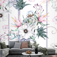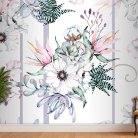 Heliconia Çiçek Anemon Echeveria Dikişsiz Desen Duvar Kağıdı