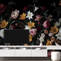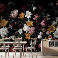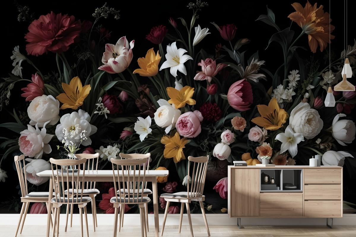 Hollandalı Koyu Çiçekler Duvar Kağıdı