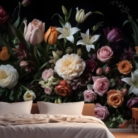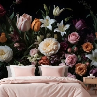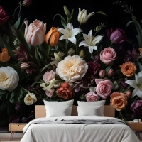 Hollandalı Koyu Çiçekler Yatak Odası Duvar Kağıdı