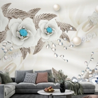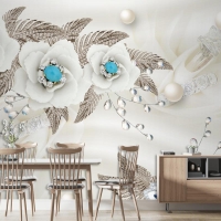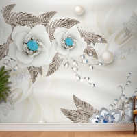 İncili Çiçekli Arka Planlı 3D Duvar Kağıdı