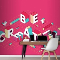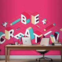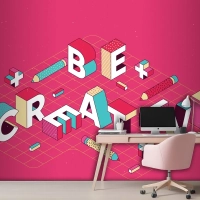 İzometrik Tipografik Mesaj Ofis Duvar Kağıdı