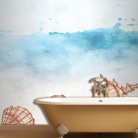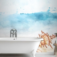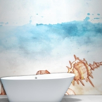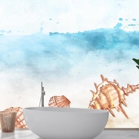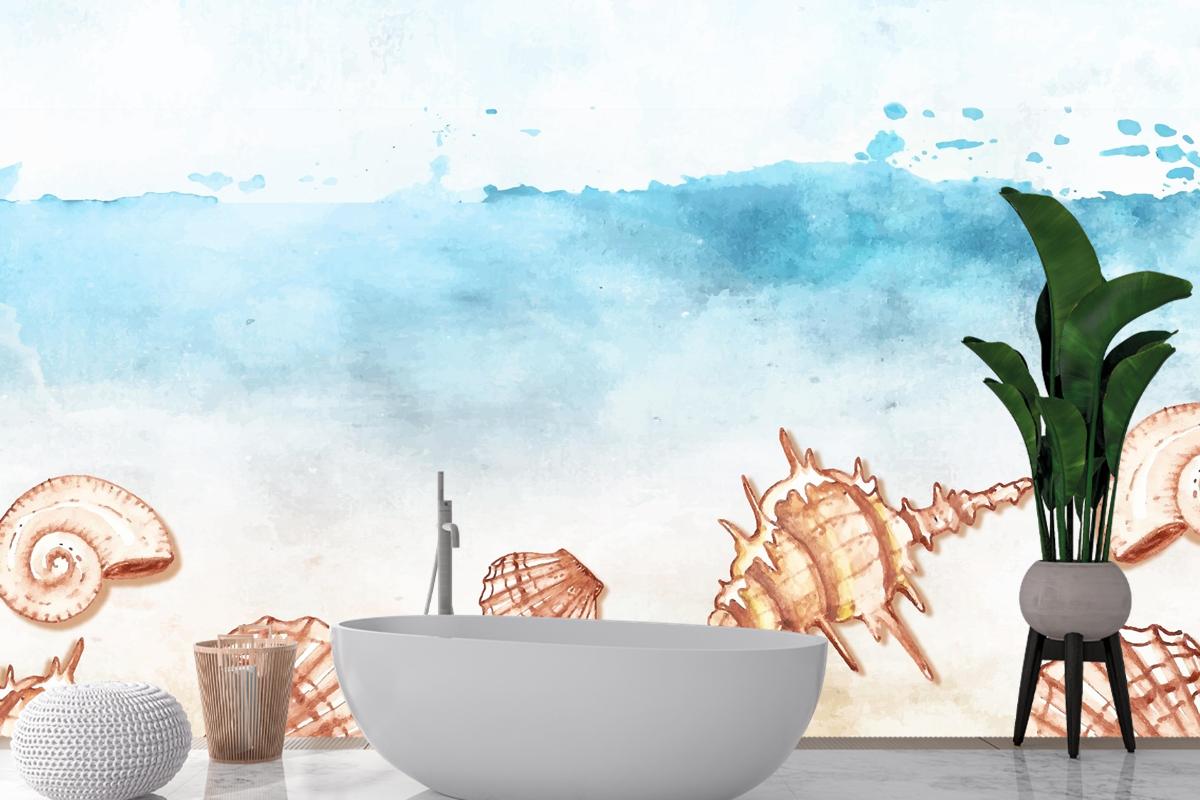 Kabuklu Suluboya Yaz Arkaplanı Banyo Duvar Kağıdı