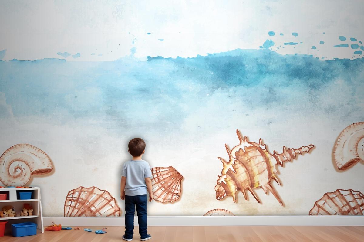 Kabuklu Suluboya Yaz Arkaplanı Çocuk Odası Duvar Kağıdı