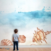 Kabuklu Suluboya Yaz Arkaplanı Çocuk Odası Duvar Kağıdı