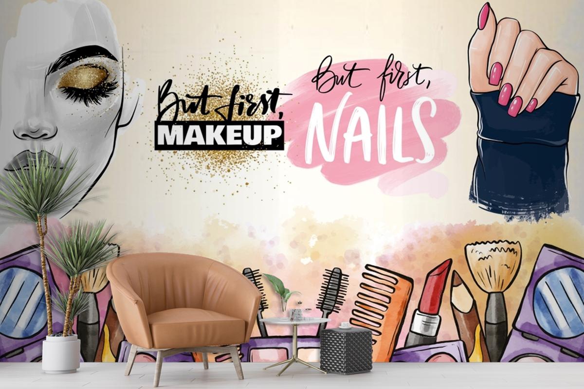 Kadın Güzellik Salonu Sulu Boya Tarzı Duvar Kağıdı