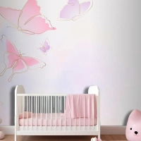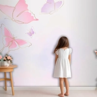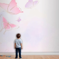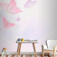 Kadınsı Kelebek Arka Plan Pembe Sınır Çocuk Odası Duvar Kağıdı