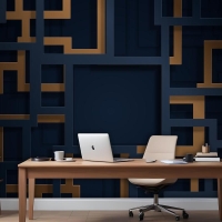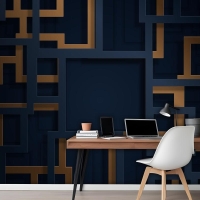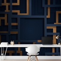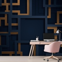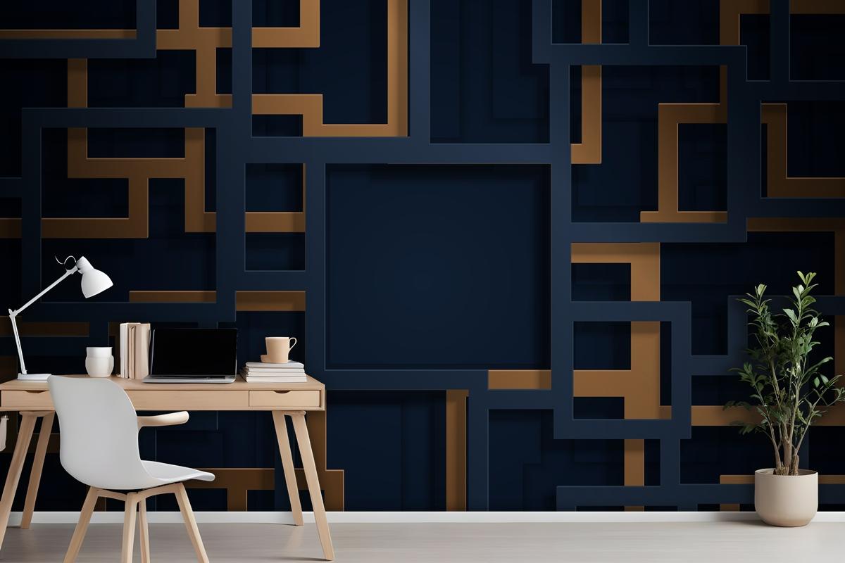 Kağıt Kesim Tarzı Ofis Duvar Kağıdı Duvarında 3D Mavi Ve Altın Çizgiler