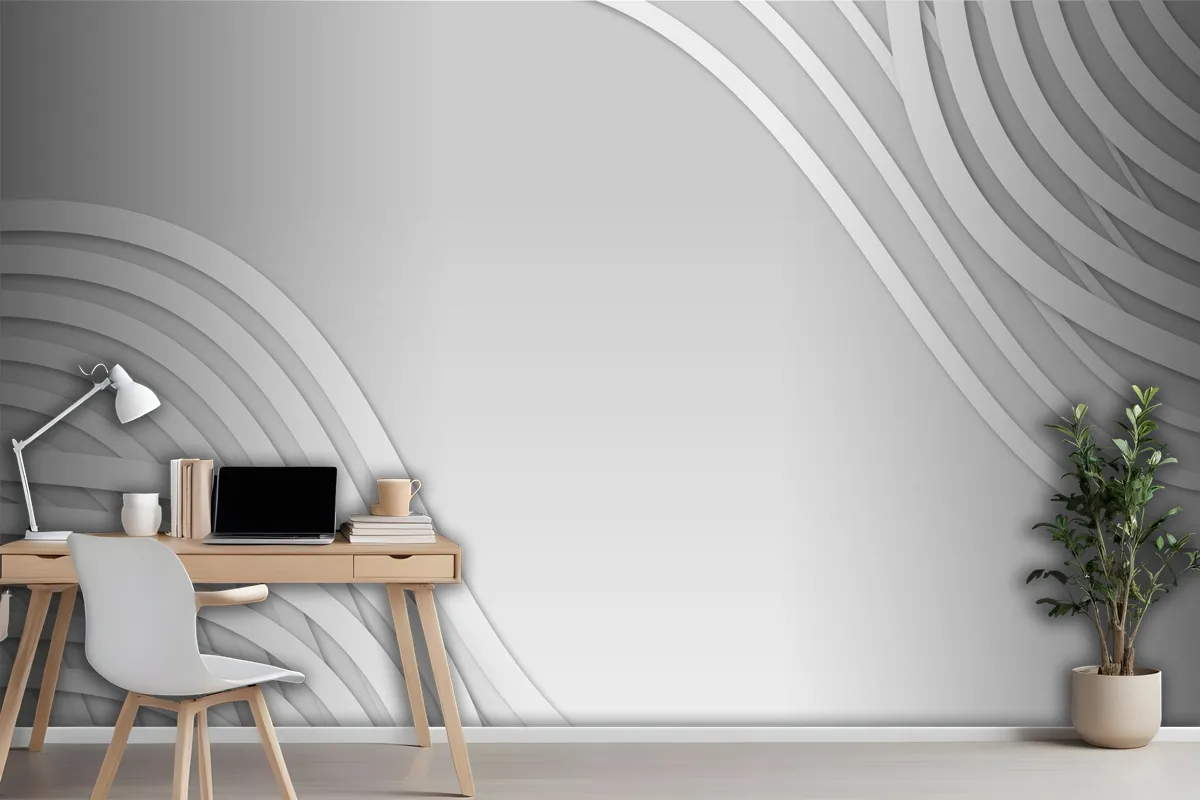 Kağıt Stili Beyaz Tek Renkli Arka Plan Ofis Duvar Kağıdı