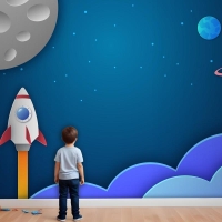 Kağıt Stili Galaxy Çocuk Boy Çocuk Odası Duvar Kağıdı