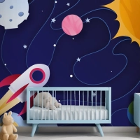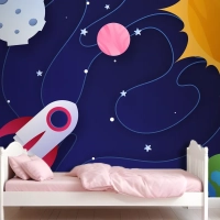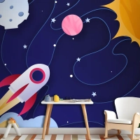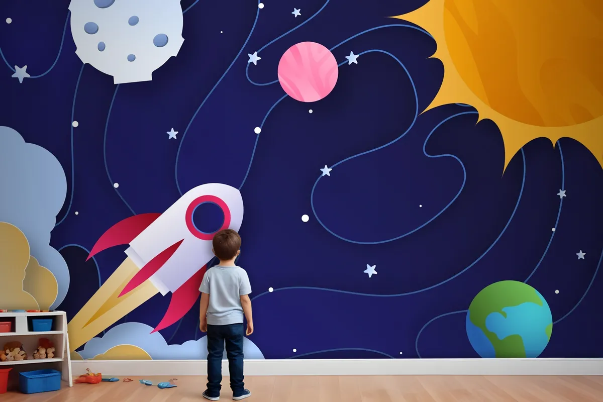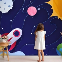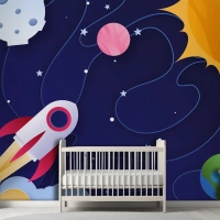 Kağıt Stili Galaxy Çocuk Odası Duvar Kağıdı