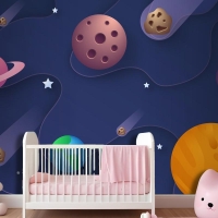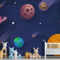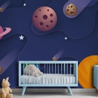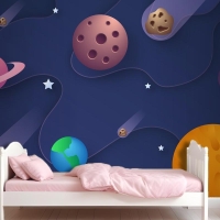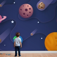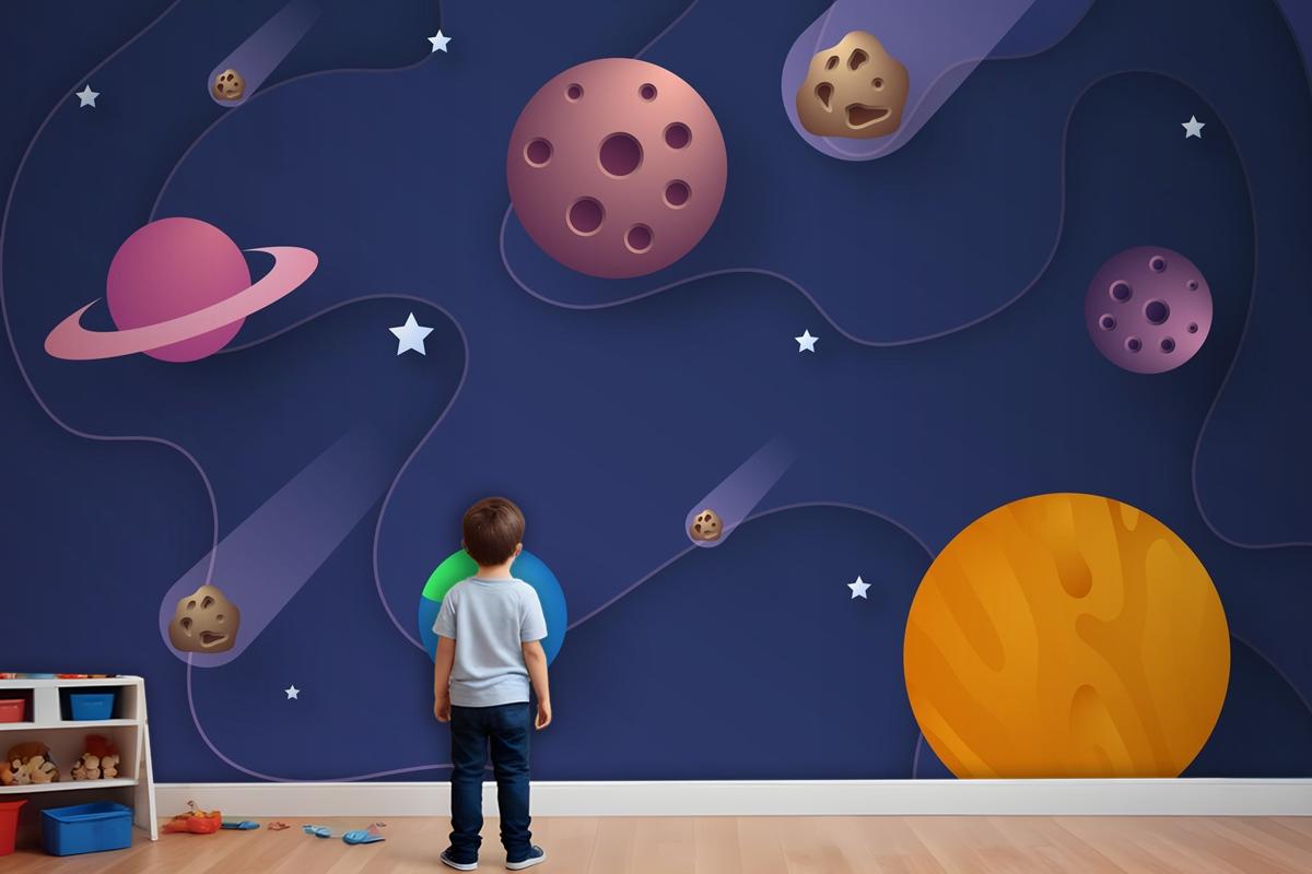Kağıt Stili Galaxy Uzay Boys Çocuk Odası Duvar Kağıdı