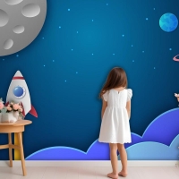 Kağıt Stili Galaxy Uzay Çocuk Odası Duvar Kağıdı