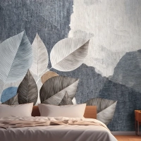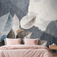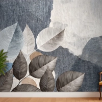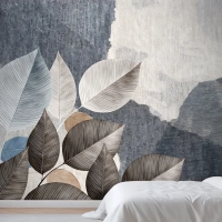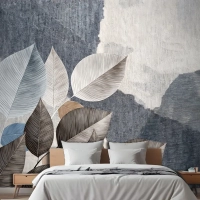 Kahve Tonlarında Dokulu Yapraklar Yatak Odası Duvar Kağıdı