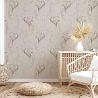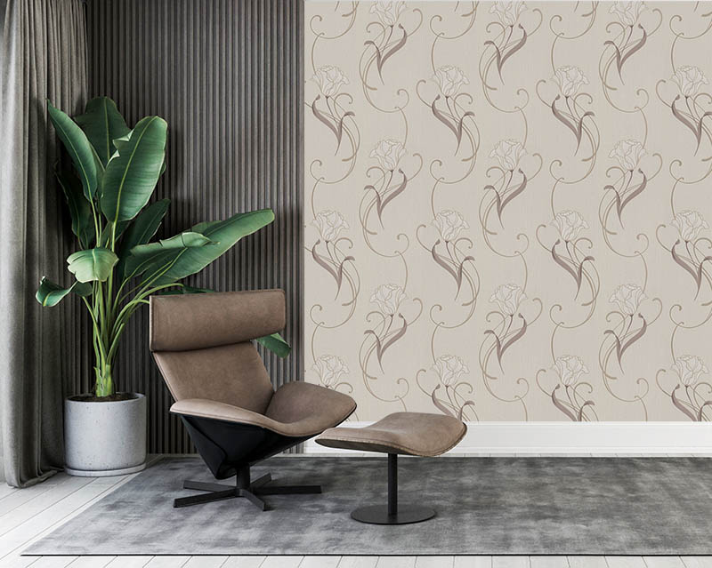 Kahverengi Krem Çiçekli Desen Ucuz Duvar Kağıdı 54373