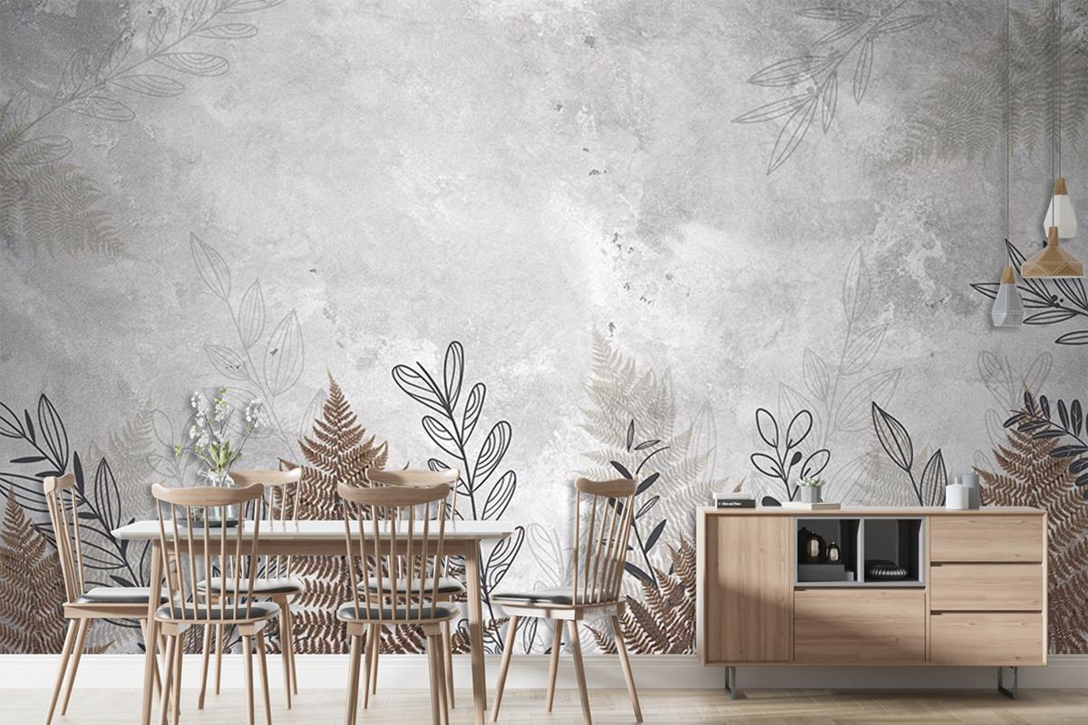 Kahverengi Krem Gri Tropikal Yapraklar Duvar Kağıdı