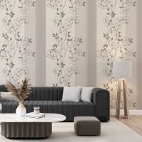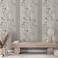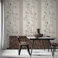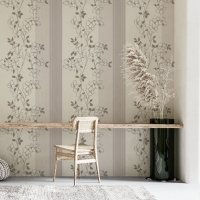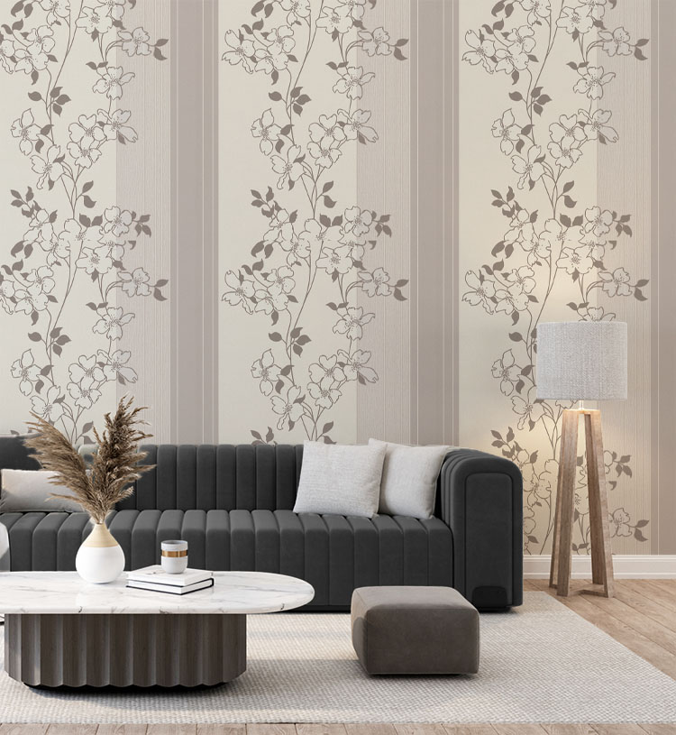 Kahverengi Krem Kenarları Çizgili Çiçekli Desen Ucuz Duvar Kağıdı 53644