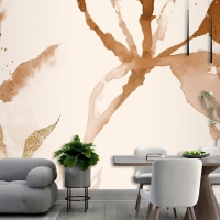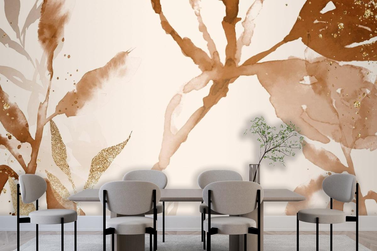 Kahverengi Suluboya Yaprak Arka Plan Estetik Sonbahar Sezonu Duvar Kağıdı