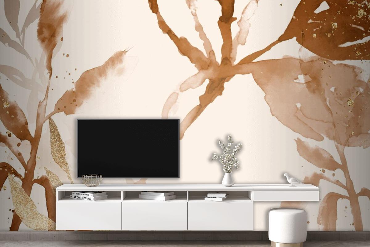 Kahverengi Suluboya Yaprak Estetik Sonbahar Mevsimi Tv Arkası Duvar Kağıdı