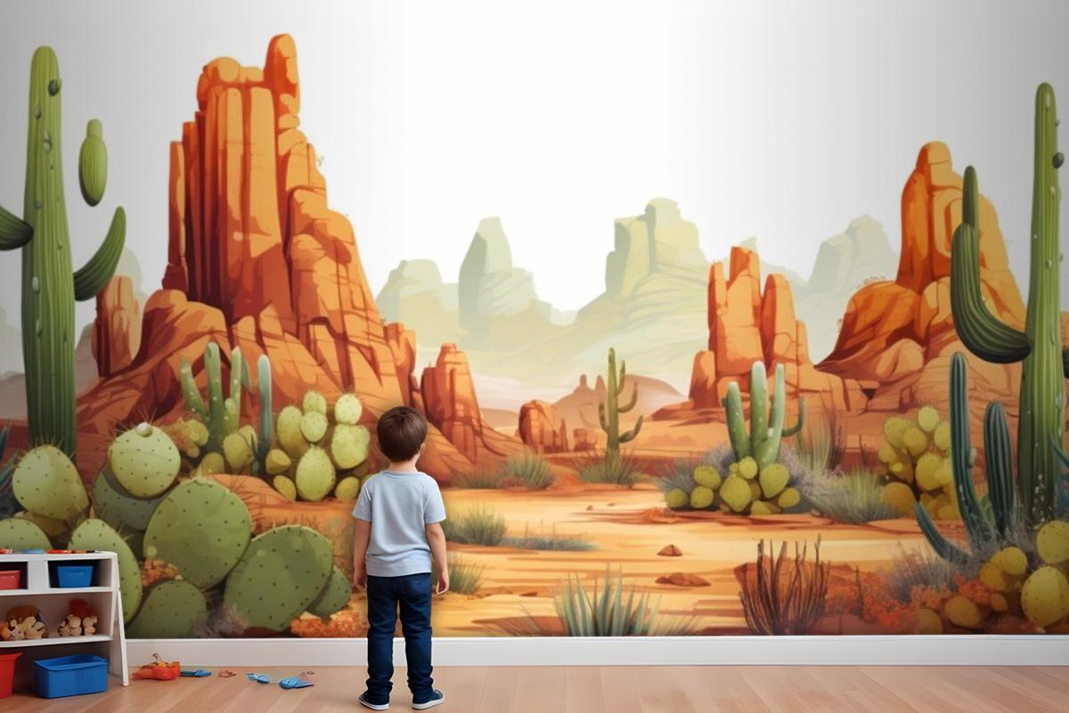 Kaktüs Ve Çöl Manzarası Çocuk Odası Duvar Kağıdı Ile Bir Çöl Manzarası Tablosu