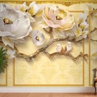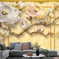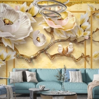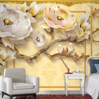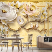 Kalıplı Klasik Iç Duvar 3D Çiçek Ve Kuşlar Duvar Kağıdı