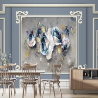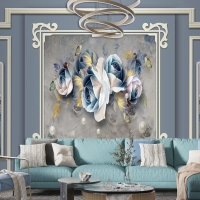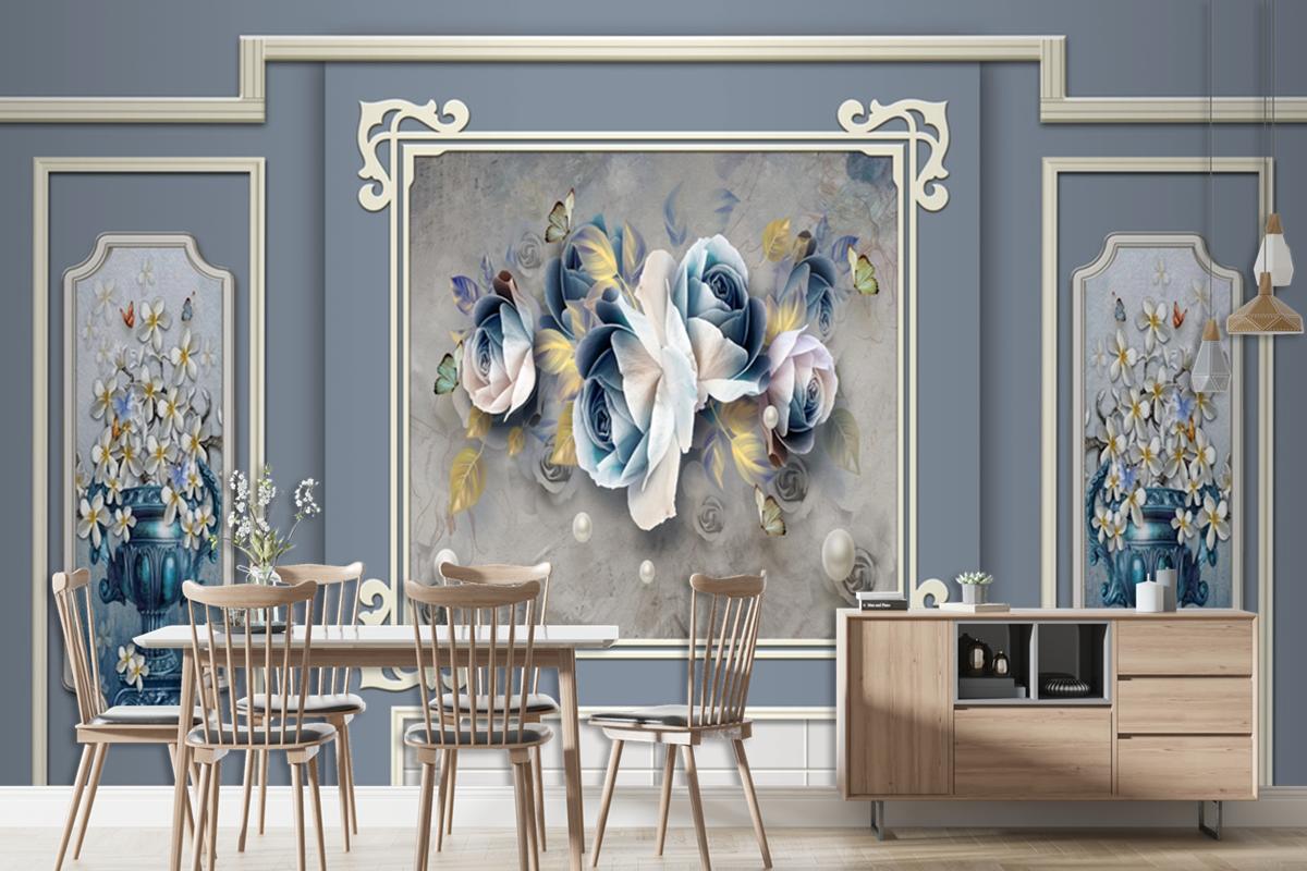 Kalıplı Klasik Iç Duvar Çiçek Tablolu 3D Duvar Kağıdı